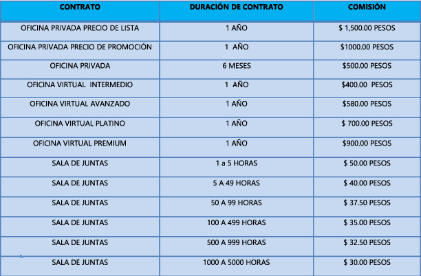 “Comisión” es la cantidad que se gana recepción por realizar nuevos contratos por renta